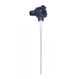 Temperature sensor suitable for measurement of aggressive liquids and gases. Sensor sheath made of heat resistant glass is suitable for long-term operating in conditions of vapour, acids, alkalis and salts. TOPSZ-157 with plastic connection headTOPSZE-157 with lead wire - teflon insulation
