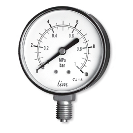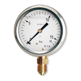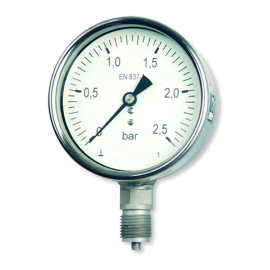 Standard pressure gauge designed to measure pressure of non-aggressive media - mechanism of copper or brass alloys and in places where atmospheric pressure does not charge. Dedicated to measure water pressure and installations in water... gases and liquid pressure measurement up to 400 barmeasurement of a non-aggressive media