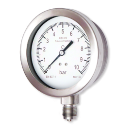 Manometers with liquid filling (glycerine or other) intended for applications where vibrations of elements or the entire device may occur. The occurrence of this phenomenon has a negative impact on the life of the entire... measurement of liquid and gases pressure up to 1000 barmeasurement while vibrations existing