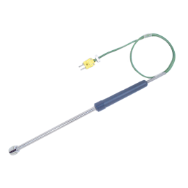 Temperature sensor suitable for measurement of flat surfaces in a temporary or permanent way.Sensor with handgrip has lead wire finished with miniature plug adequate for joining with portable temperature meter. max. temperature: +800°CTC type: NiCr-Ni /K/
