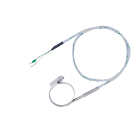 Temperature sensor with band clamp for measurement of pipes and shafts. The band clamp enables sensor installation on different types of pipes and shafts which are to be measured. temperature max. 400 ° Csensor Pt100, Pt500, Pt 1000, Fe-CuNi /J/, NiCr-Ni /K/