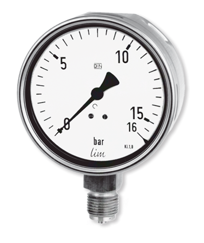 The manometer is designed for measuring the pressure of liquid and gaseous media. The housing is made of stainless steel, and the elements in contact with the medium are made of copper alloys, predisposing for use in industrial applications where the measured medium does not react with copper and where the temperature does not exceed 60ºC. It is possible to perform both the execution with greater tightness - the rolled housing. Standard accuracy class is 1.0%.