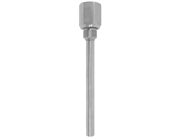 Drilled thermowells for use in high pressure and high flow, as security for the proper operation of RTD and TC sensors (ex. type TOPGI-11) in measurement applications. The whole element is made of a single material with a deep drilling over the entire length. They are widely used in heavy industry, food, chemical and power industry. The thermowell is screwing in a place of measurement via threaded connector.
