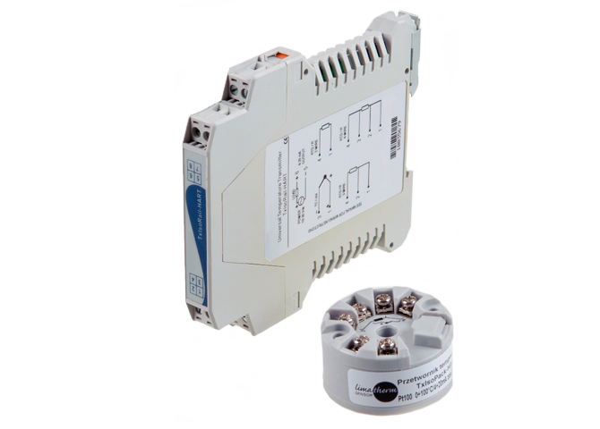 Temperature transmitter is an integral element of temperature sensor, available also as a separate component. It converts temperature sensor signal to analogue 4÷20mA, voltage 0÷10V or different signal. Transmitter can be placed directly in connection head or on TS-35mm rail.