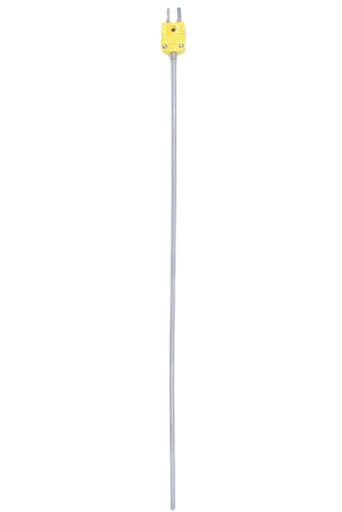 Temperature sensor suitable for measurement in hard-to-reach places and in applications requiring the use of flexible sensors with small diameters, and low thermal inertia.