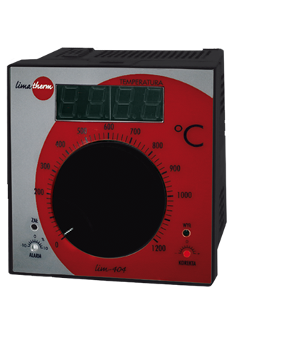 The LIM 902, 404 regulators are simple and reliable analog regulators. The LIM 404 controller has an LCD display which shows the measured value. The set value is changed with a knob. The controller has a dedicated input for a J, K or Pt100 thermocouple. The 10A relay output allows you to control small loads without the use of additional contactors. The controller has a choice of ON / OFF control with hysteresis or proportional control P. LIM 404 can be additionally extended with an alarm relay 2A (option), which operates in the range of ± 10% of the set value.