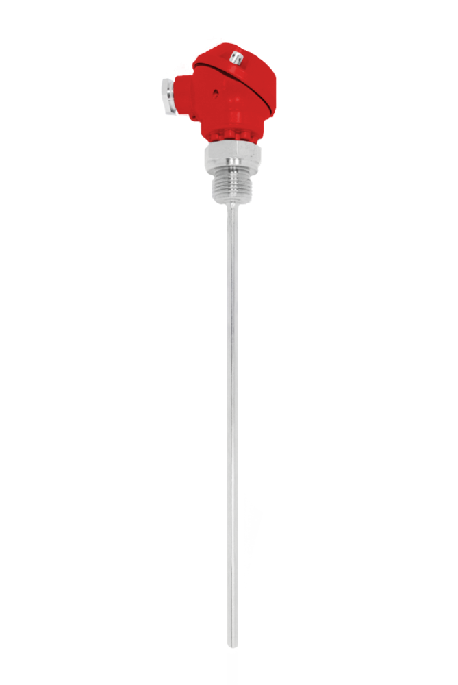 Temperature sensor applied in industrial pipelines, pressure and other tanks for temperature measurement of liquids and gases. Sensing element is placed directly in the thermowell.