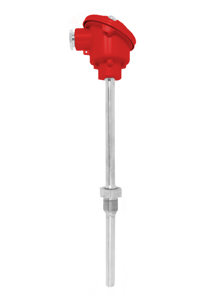Temperature sensor applied in industrial pipelines and pressure tanks. Sensing element is placed directly in the thermowell.