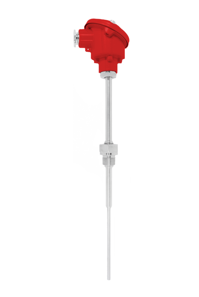 Temperature sensor applied in industrial pipelines, pressure tanks and different industrial devices for temperature measurement of liquids and gases. Sensing element is placed directly in the thermowell.