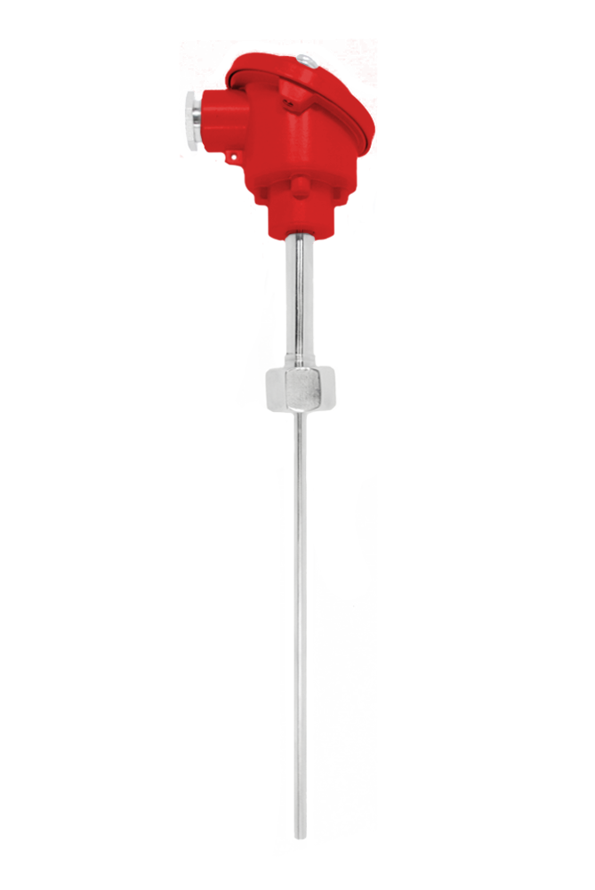 Temperature sensor applied in industrial pipelines, pressure tanks and different industrial devices for temperature measurement of liquids and gases. Sensing element is placed directly in the thermowell.