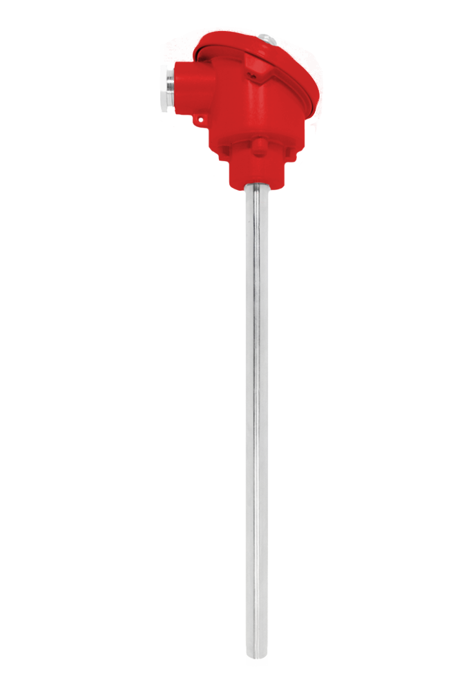 Temperature sensor suitable for measurement of industrial processes. Sensing element is placed directly in the sheath.